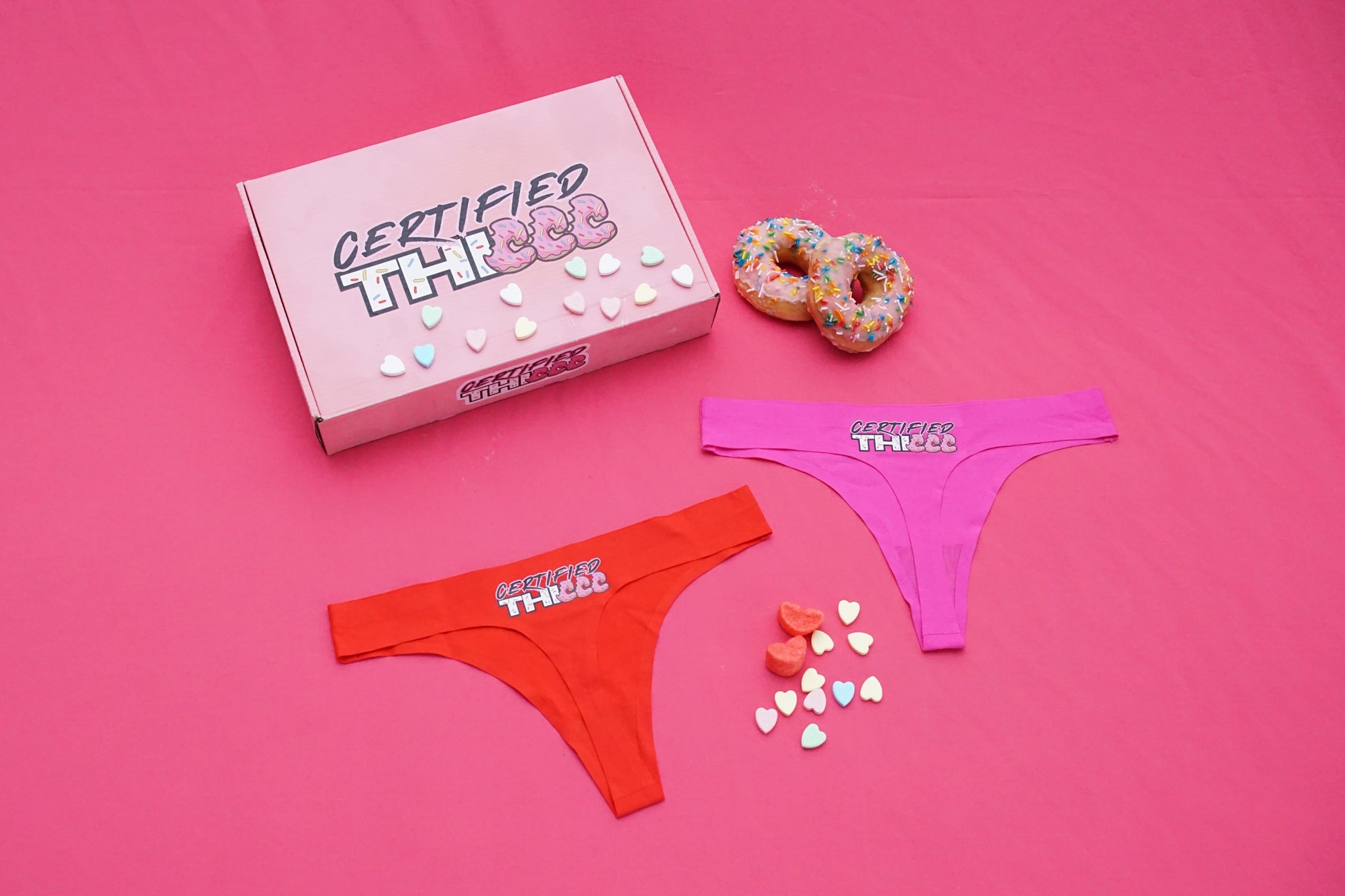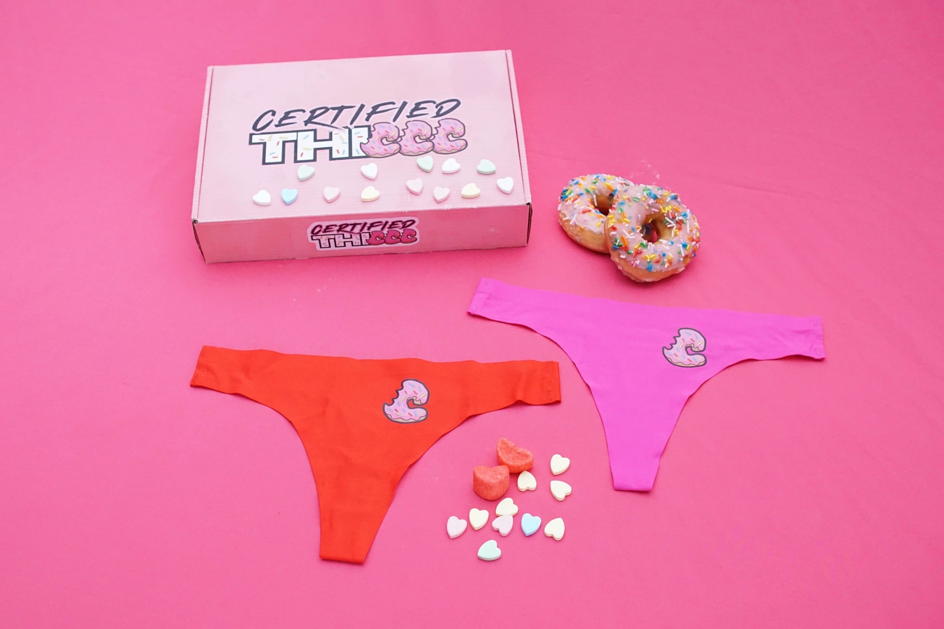 Experience ultimate comfort and style with our Valentine's Day Theme Seamless Thong Set crafted from our premium nylon/spandex blend for a perfect mix of stretch and softness. Designed to move with you, this thong offers a sleek, no-show fit that's both cute and practical. Featuring our iconic Certified Thiccc logo on both the front and back, it adds a touch of signature flair to your everyday essentials. Whether you're hitting the gym or lounging at home, this thong is your go-to for all-day comfort and confidence.