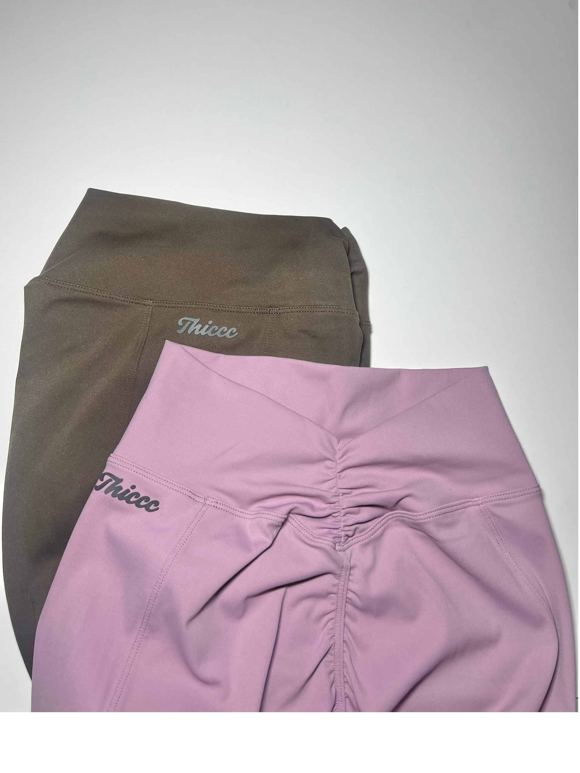 -Front and side leg Thiccc logo.